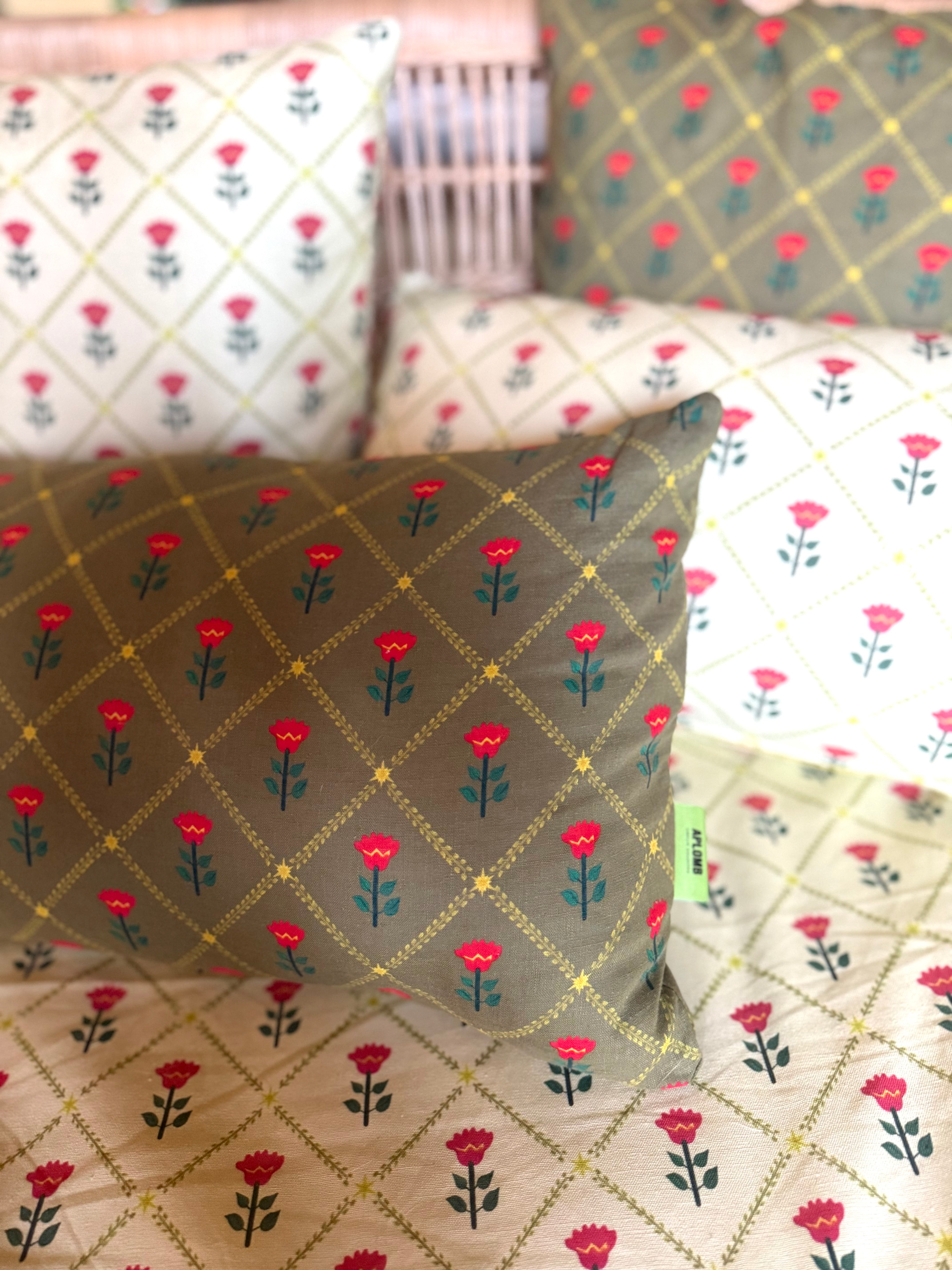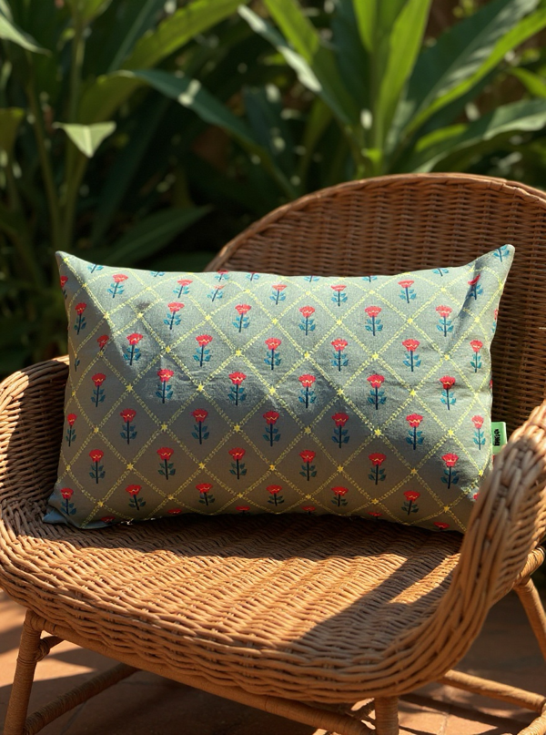 Coussin « Fleur Indie » Spinach rectangulaire