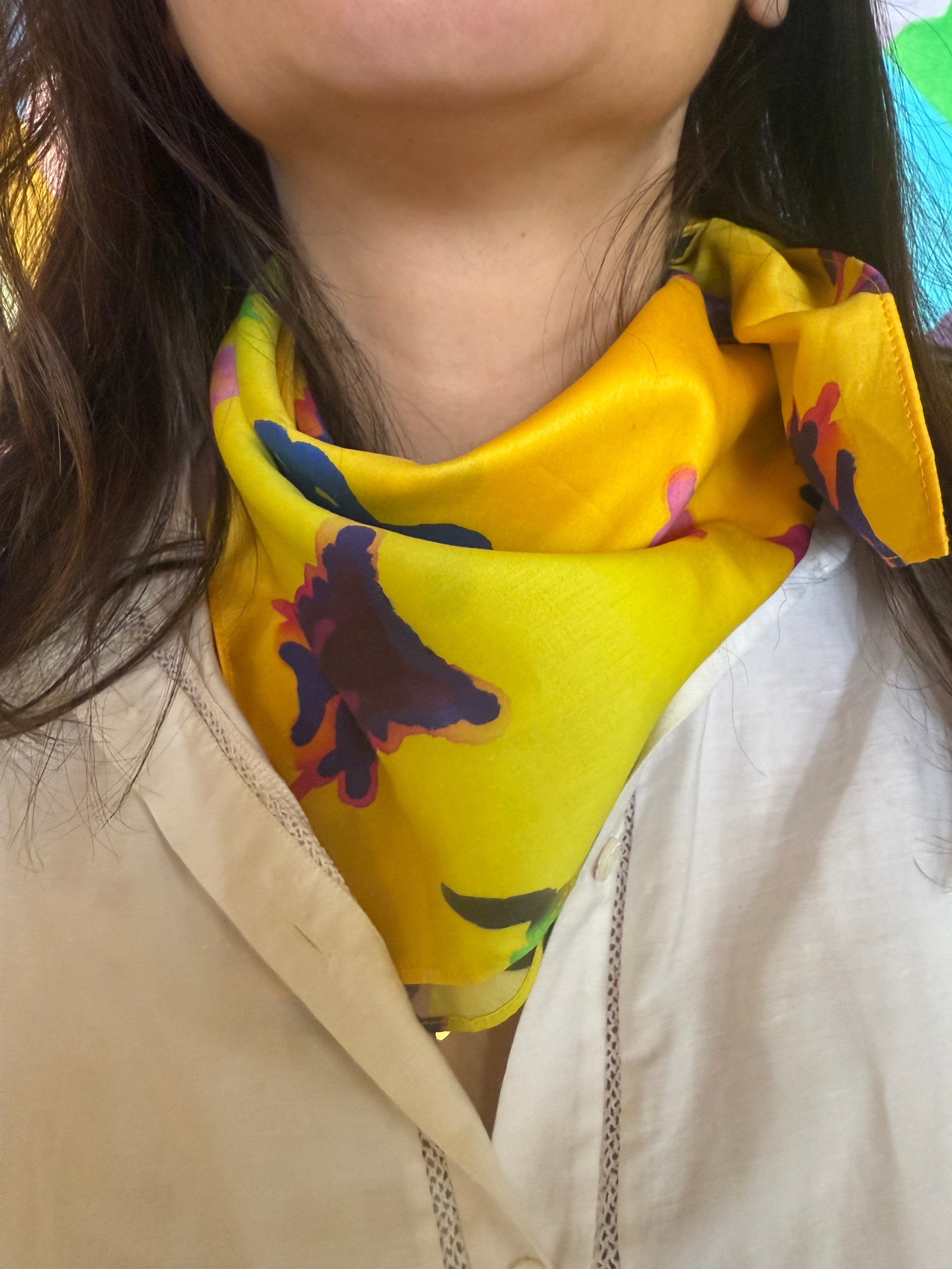 Foulard 55*55 cm en satin de coton issu de fibres 100% coton. Son tissage en armure satin, particulièrement serré et régulier, lui confère un aspect légèrement brillant, une texture soyeuse et une douceur supérieure à celle du coton traditionnel souvent comparée à celle de la soie.